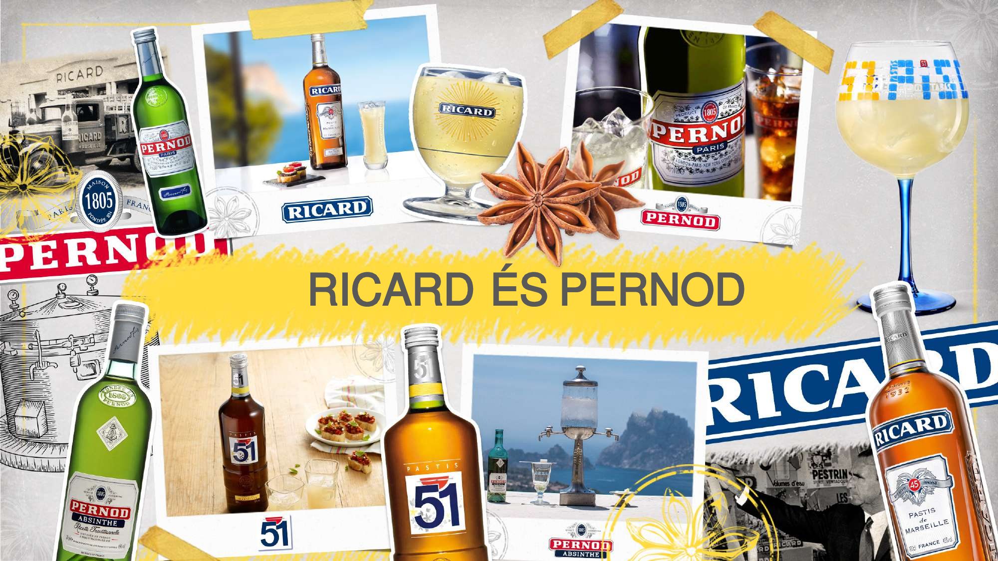 Van a "Marseilles-i napsütés" (Ricard), a "párizsi délután" (Pernod) és a "zöld tündér" (Pernod Absinthe)